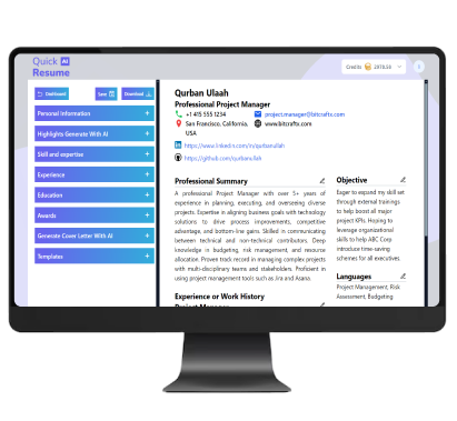 Craft your professional journey with our QuickAiResume â where your skills meet opportunity!